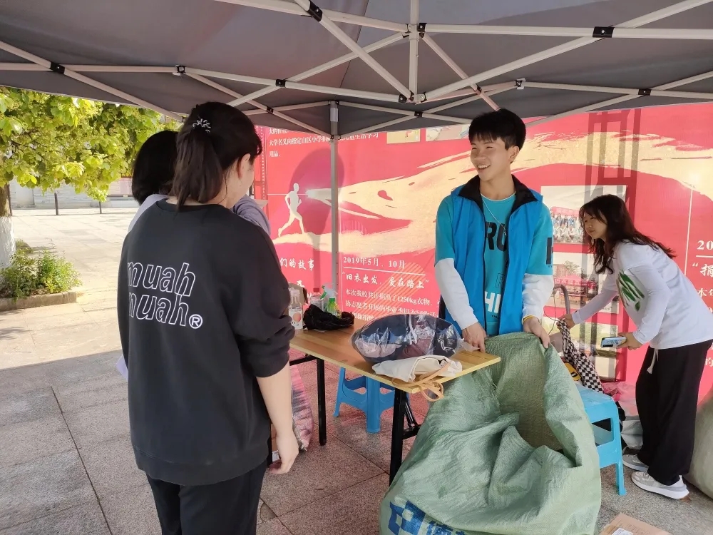 志愿者们在五四广场、食堂门前、宿舍楼下等地设置服务点,收集到的旧衣物经过集中消毒、分类、打包、存放等程序,井然有序、有条不紊地完成后续工作。