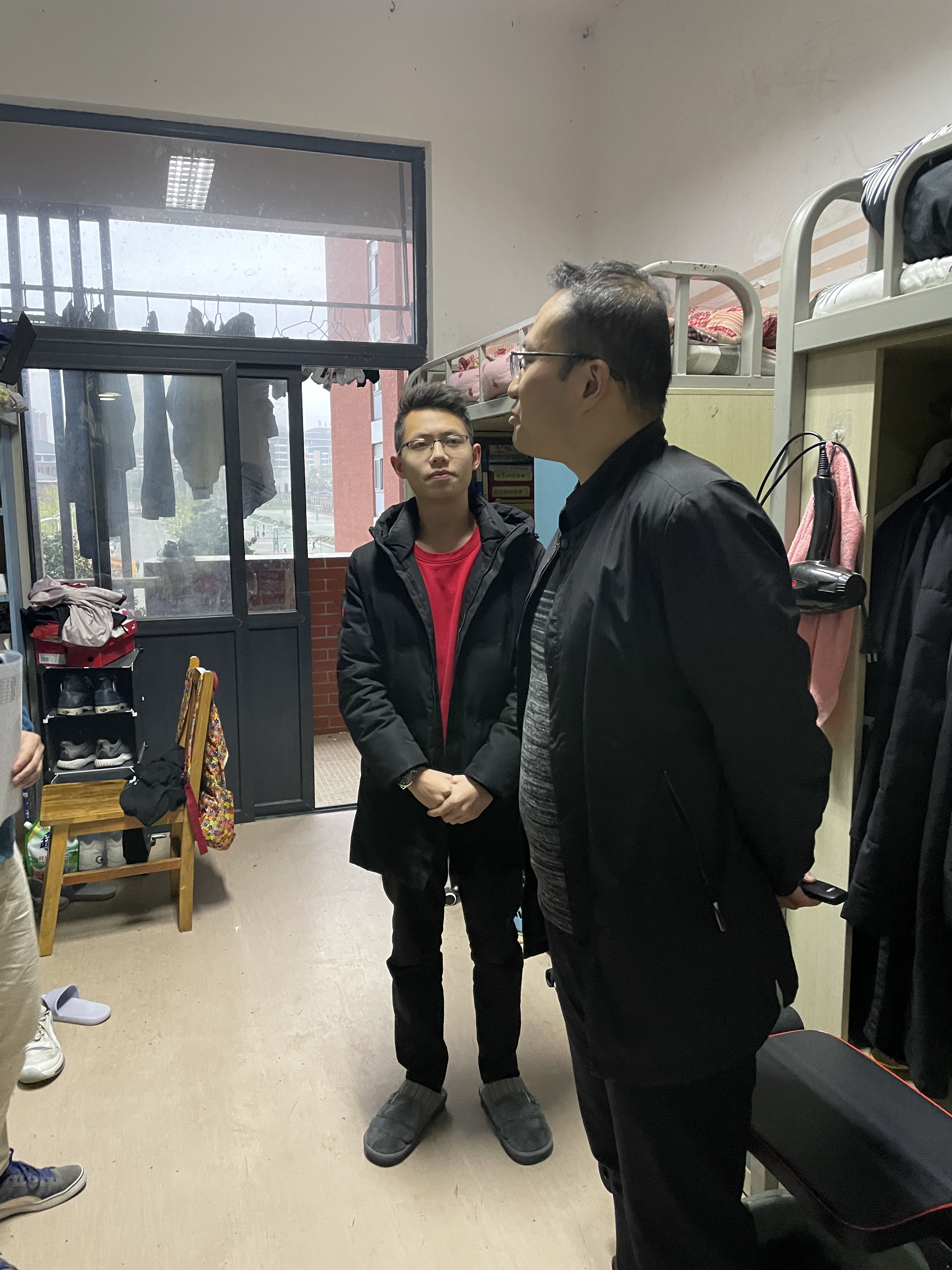 入住在翠竹苑、丹桂苑等寝室的同学情况。在走访过程中,院领导、辅导员与同学们亲切交谈,杨阳书记十分关心同学们的生活和学习情况,叮嘱同学们在宿舍用水用电要注意安全、要注意防盗防骗,正确处理同学之间的关系,同时要加强体育锻炼,全面提升自身综合素质。