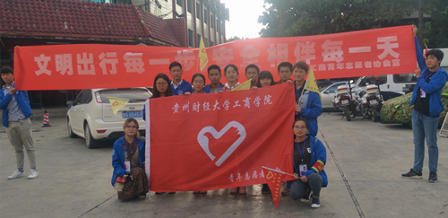 2017年11月11日上午10点,工商学院青年志愿者协会在花溪将军路和贵筑路举行志愿交警活动,工商青协成员与部长自愿报名参与本次活动。