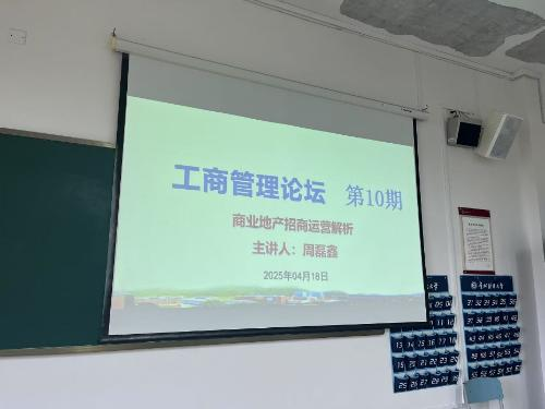 2025年4月18日晚,马会app 在崇德楼420教室成功举办第十期"工商管理论坛"。本次论坛以"商业地产招商运营解析"为主题,特邀贵州省群升置业有限公司副总经理周磊鑫担任主讲嘉宾,学院党委副书记何瑞主持,2024级MBA全体同学参与学习交流。
