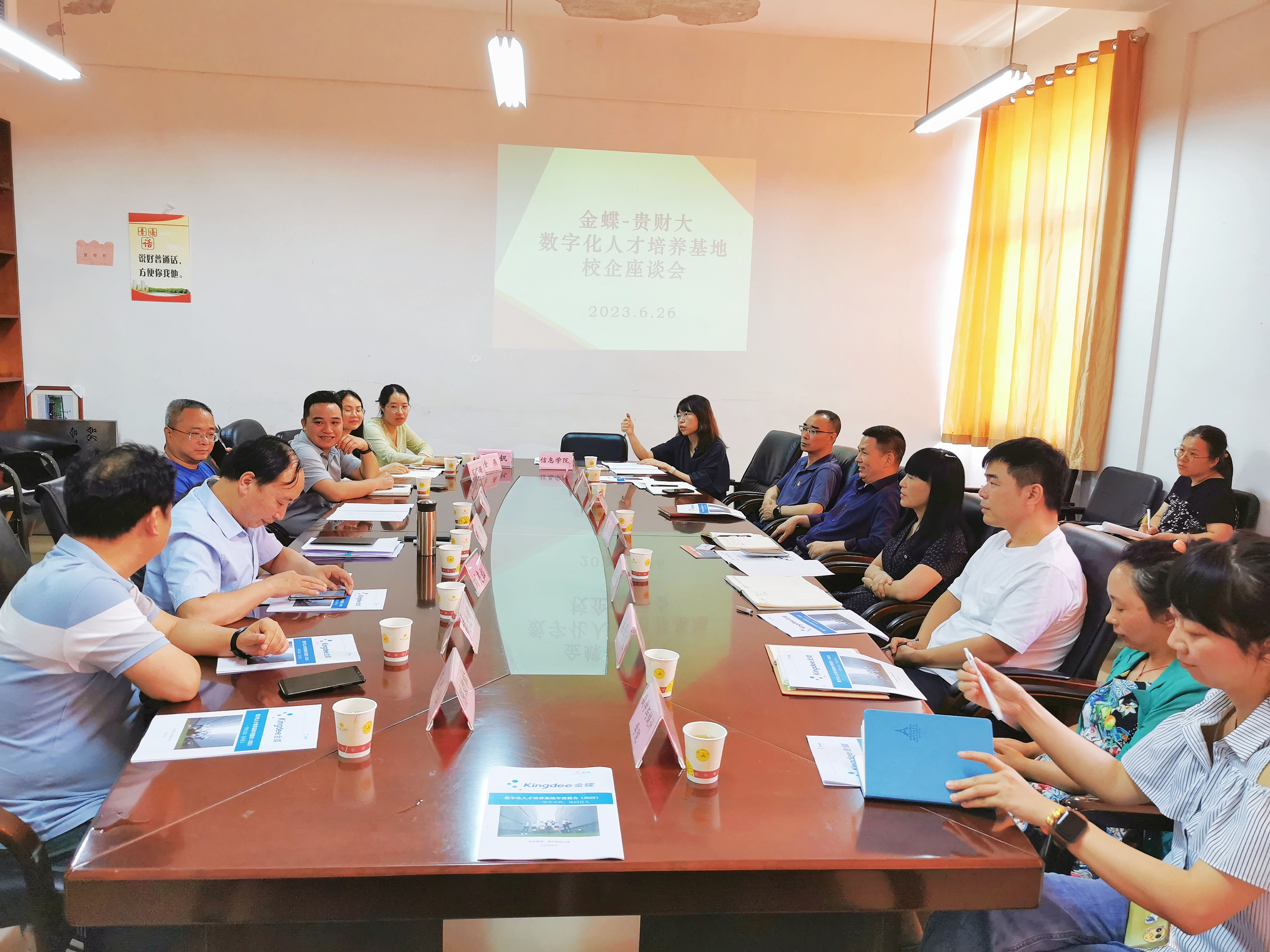 进行调研,金蝶精一信息科技服务有限公司黔鄂区经理莫才龙,学校教务处、大数据统计学院、大数据应用与经济学院、会计学院、数学与统计学院、法学院等部门负责人参加交流座谈。座谈会由马会app