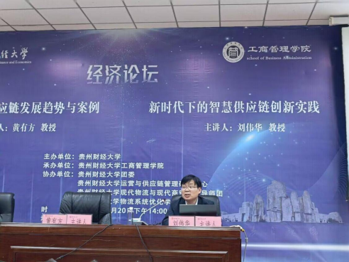 2023年10月20日下午,受贵州财经大学邀请,教育部新文科建设工作组副组长、教育部高校物流类专业教学指导委员会主任、上海海事大学原校长黄有方教授与教育部高校物流类专业教学指导委委员兼青年工作组组长、天津大学运营与供应链管理系系主任刘伟华教授,在崇德楼114报告厅为全校师生带来了题为“现代物流与供应链发展趋势与案例”与“新时代下的智慧供应链创新实践”的专题讲座。