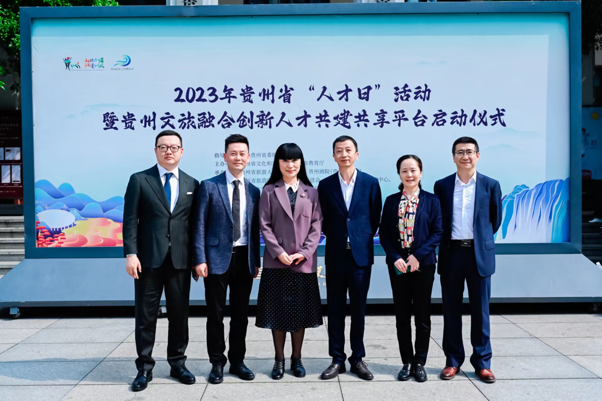 2023年4月21日下午,校党委委员、副校长彭洁出席在贵州画院(贵州美术馆)举行的2023年贵州省“人才日”活动暨贵州文旅融合创新人才共建共享平台发布仪式,本次活动是为了切实推进2023年贵州省"人才日"活动,聚焦"贵州省百千万人才引进计划",结合贵州省文化旅游人才发展实际而开展的。活动由贵州省文化和旅游厅、贵州省教育厅联合举办。我校马会app 党委书记杨阳、马会app 杨春宇教授参加了启动仪式。