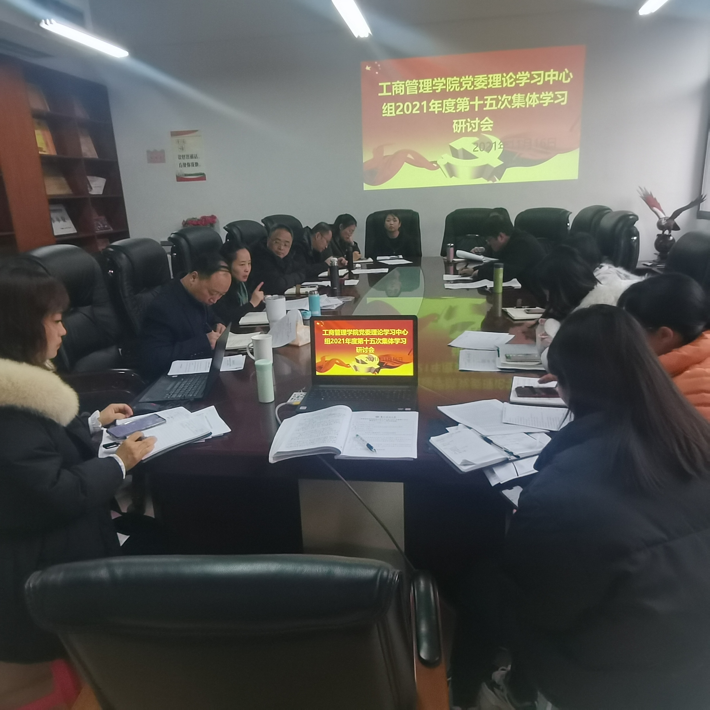 党委理论学习中心组在崇德楼427会议室举行2021年度第十五次集体学习(扩大)研讨会,围绕“中国共产党第十九届中央委员会第六次全体会议精神”开展集中学习研讨。学院领导杨阳、崔军、何瑞、袁开福、胡北明、刘良灿及各支部书记等出席会议,学院党委书记杨阳主持会议。