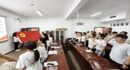 在彭洁带领下,全体党员庄严肃立,高举右拳,重温入党誓词。铿锵有力的誓言在会场回响,每一位党员神情庄重,眼神坚定,通过重温入党时的庄严承诺和坚定决心,进一步强化了党性意识。