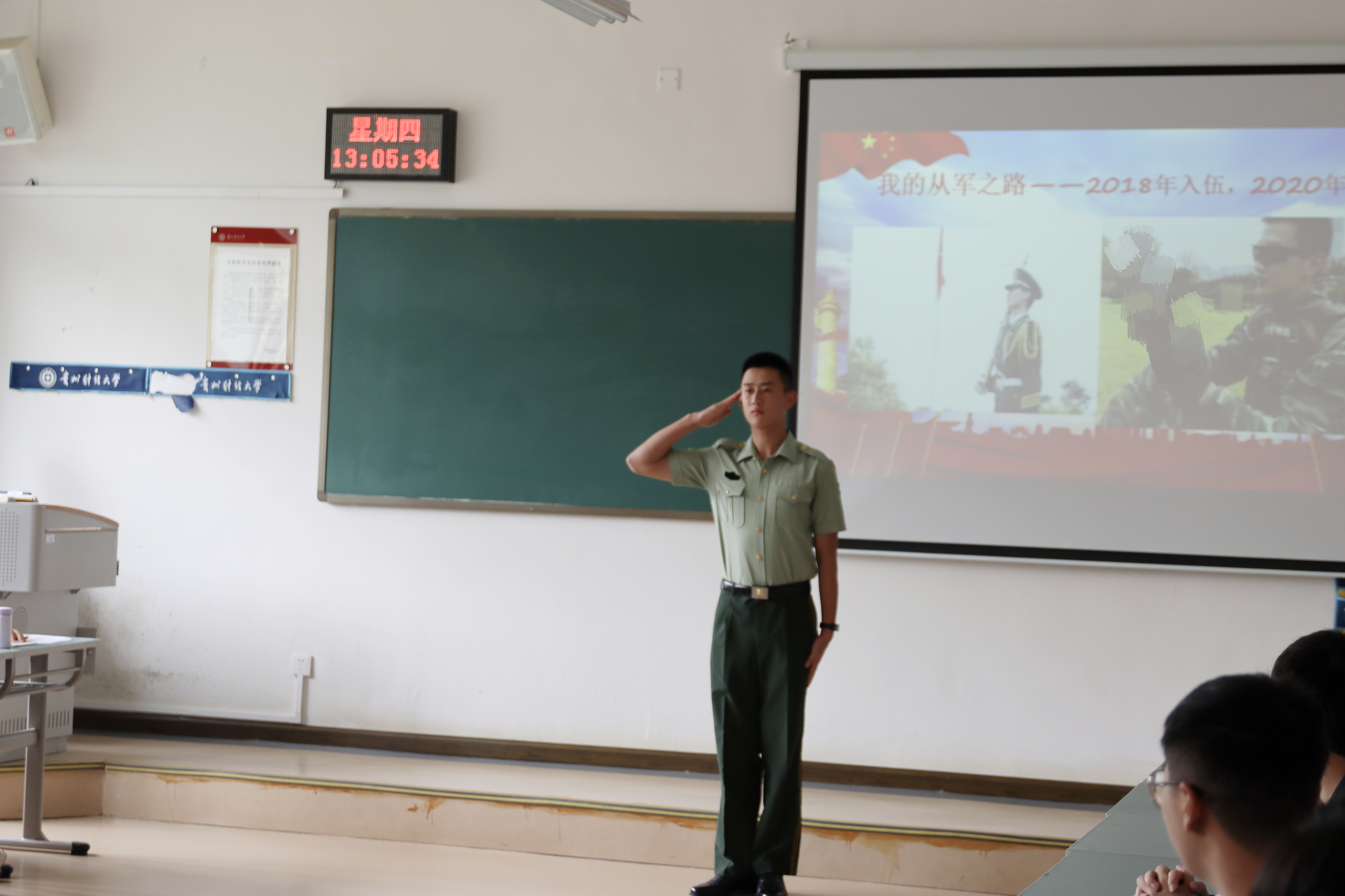 胡细根详细地为同学们讲解了应征入伍的基本条件和优惠政策,告诉同学们“部队就是一个弹簧,你越努力,就弹得越高”“穿上军装,一切皆有可能”。