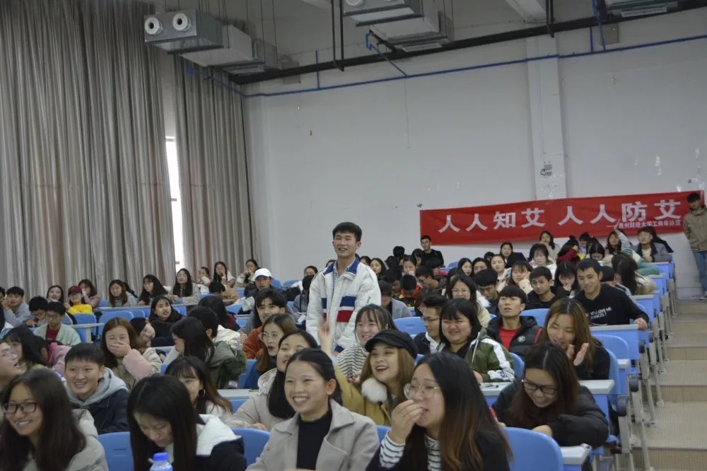 2019年12月1 日是第32个“世界艾滋病日”,在这个特殊节日来临之际,为加强艾滋病的预防宣传,普及艾滋病的相关知识,营造文明、和谐的人际交流环境,马会app 于2019年11月26日在进学楼3-1教室开展“人人知艾,人人防艾”主题艾滋病宣讲会,马会app 党委常务副书记崔军、马会app 团委负责人孔淑华,以及马会app 280多名同学参与此次活动。