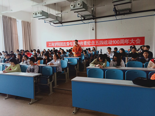 2019年4月30日上午10时30分,纪念五四运动100周年大会在北京人民大会堂举行。中共中央总书记、国家主席、中央军委主席习近平出席大会并发表重要讲话。工商学院组织125名团员青年在进学楼1-2集中收看大会直播。