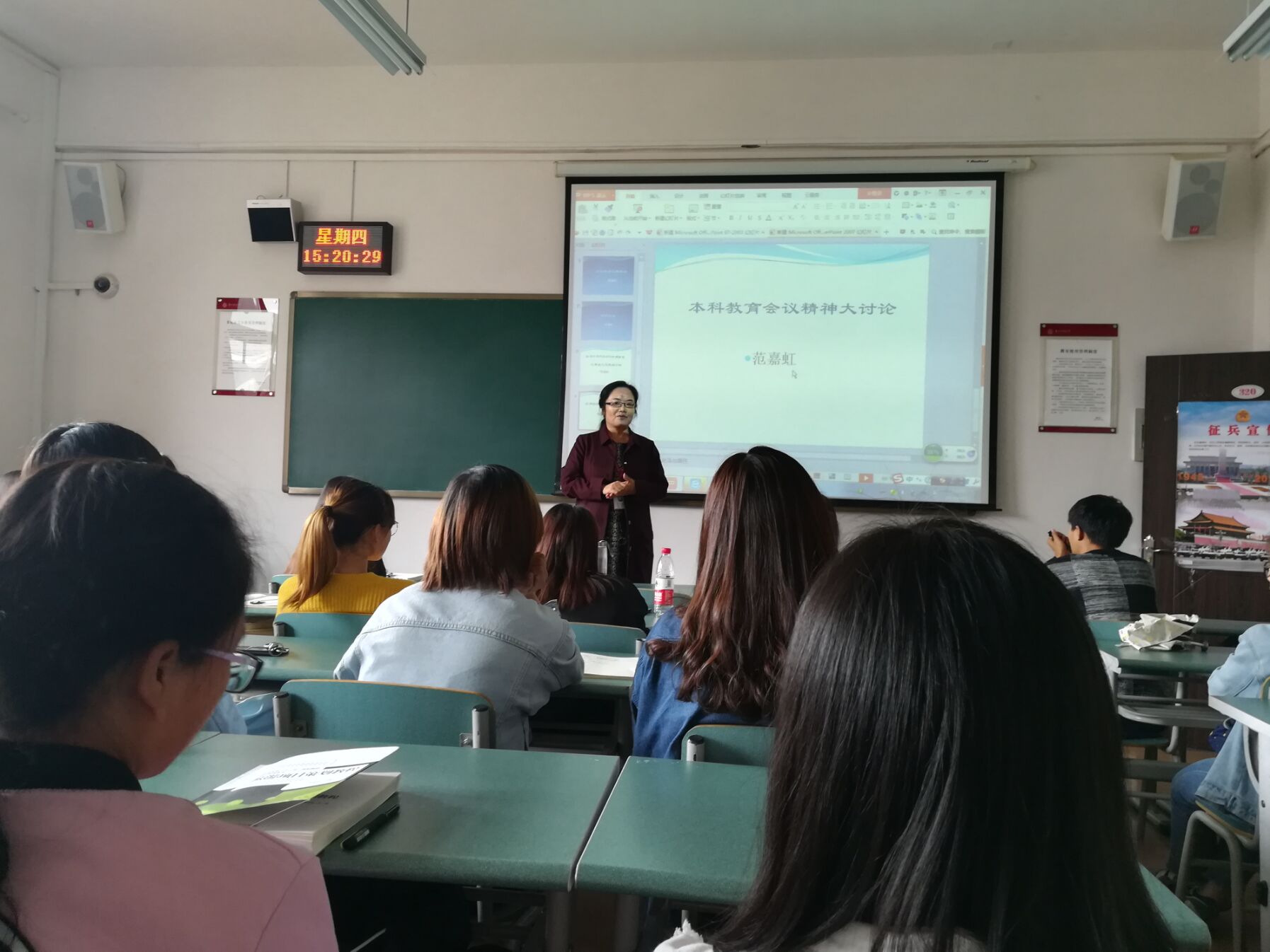 2018年9月28日,工商学院党委组织全体学生干部在明德楼2—18教室,学习陈宝生在全国本科教育工作会议上的讲话精神,院党委副书记范嘉虹主持讨论,并给同学们解读了会议精神。