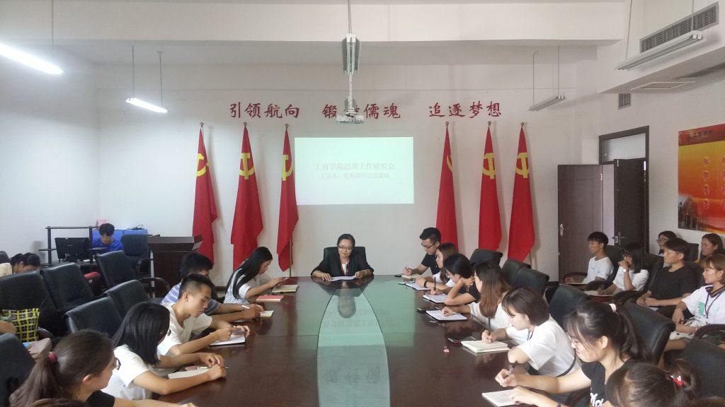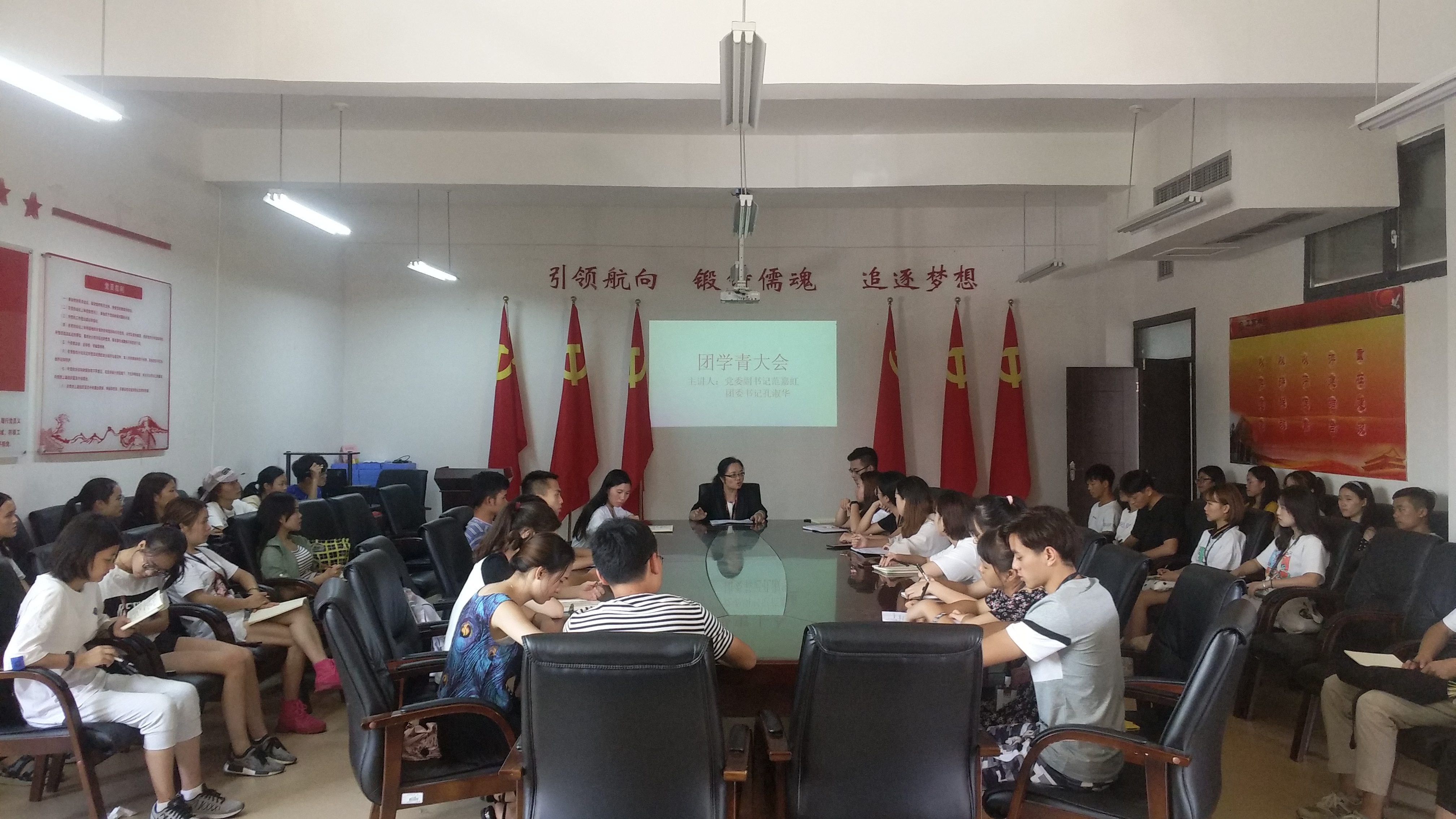 2018年9月4日工商学院2018年 “团学青”大会暨全国高校共青团思想政治工作会议精神研究会在崇德楼306顺利召开。院党委副书记范嘉虹、院团委负责人孔淑华及全体团学青干部出席本次会议。