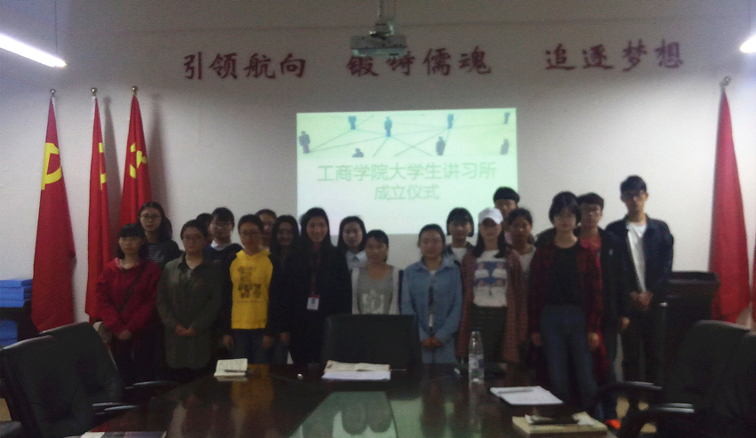 为了增强大学生学习十九大精神的实效,让大学生们用自己的视角来更积极参与到学习、宣传十九大精神中来,2018年4月10日下午,工商学院大学生讲习所在崇德楼306会议室成立,工商学院团委书记孔淑华、宣讲团成员以及学生代表参加了此次成立仪式。