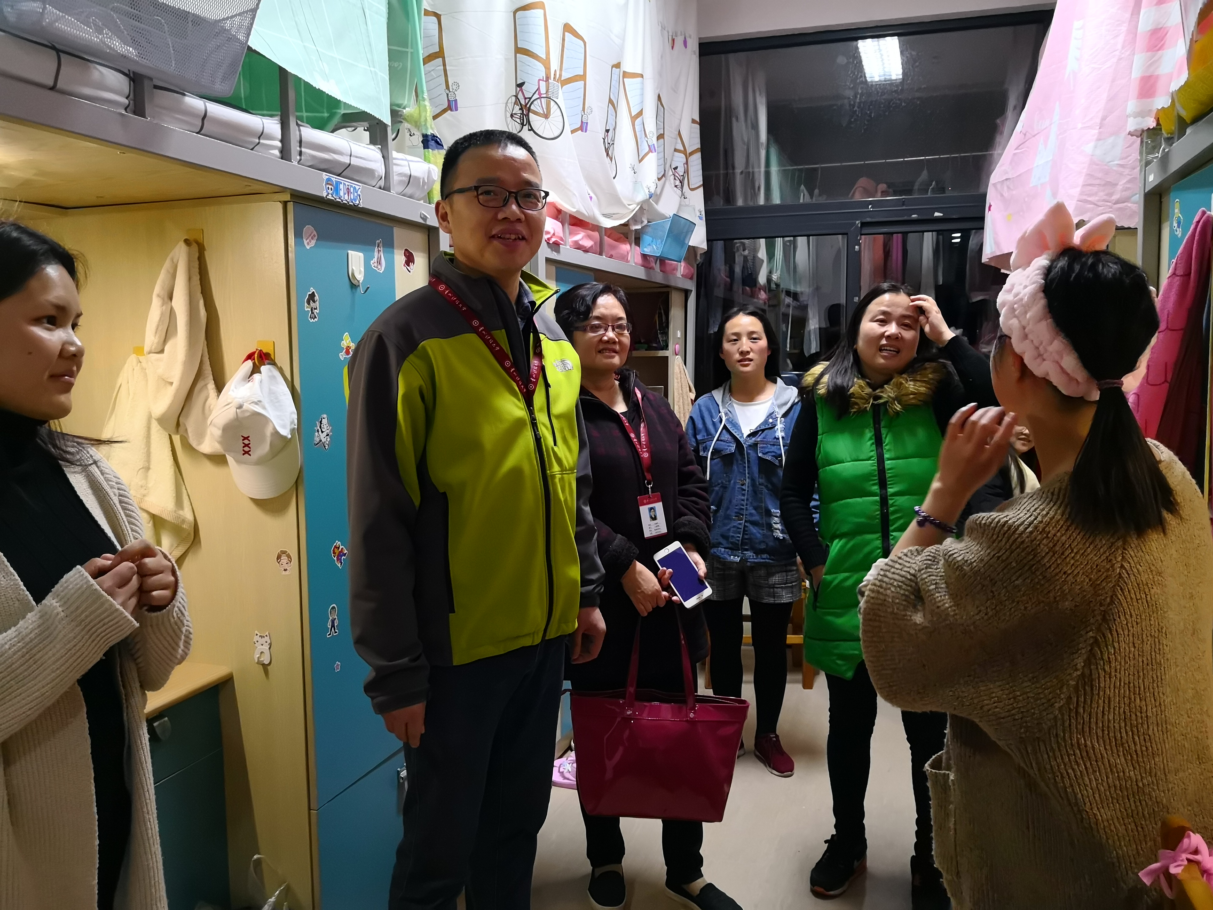 老师们关切地询问同学们寝室的各方面安全情况,叮嘱大家要注意人身财产安全,在学习、生活中遇到困难要及时主动地向辅导员和学院寻求帮助。