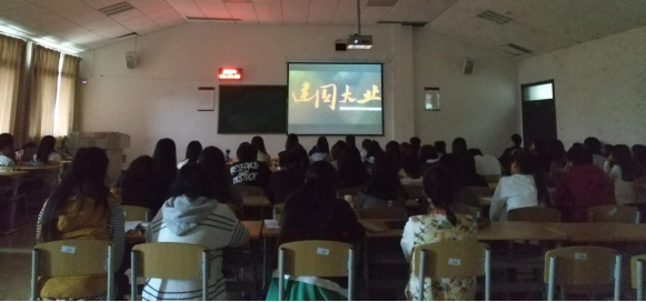 2017年10月14日上午9:00,贵州财经大学工商学院学生党建工作中心组织2017年秋季入党积极分子观看学习影片《建国大业》与《杨善洲》。
