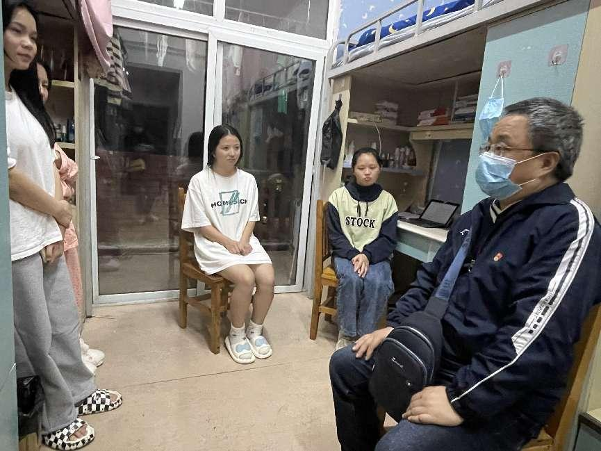 学院领导还于16日晚上深入学生寝室,与同学们一起学习交流党的二十大精神。