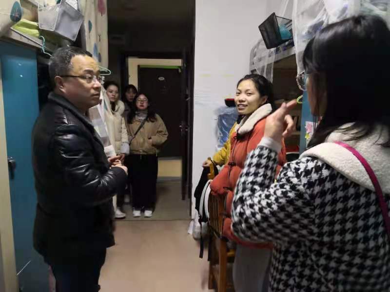 此次走访过程中,着重查看了毕业班、分流班级和更换辅导员班级的同学情况,院领导、辅导员与同学们进行了亲切交流。崔军副书记关心同学们的生活状况,叮嘱同学们注意用电安全、财产安全。同时及时联系宿管、后勤反映寝室设施的问题,后勤部门也表示会及时上门维修,保证学生们的正常生活。
