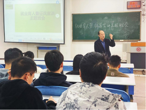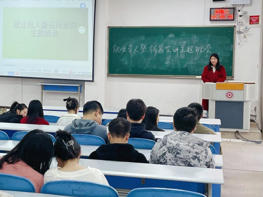 在进学楼阶101举办了一场就业育人暨征兵宣讲主题班会。武装部胡细根老师和辅导员孔淑华老师作为主讲人出席了班会,马会app