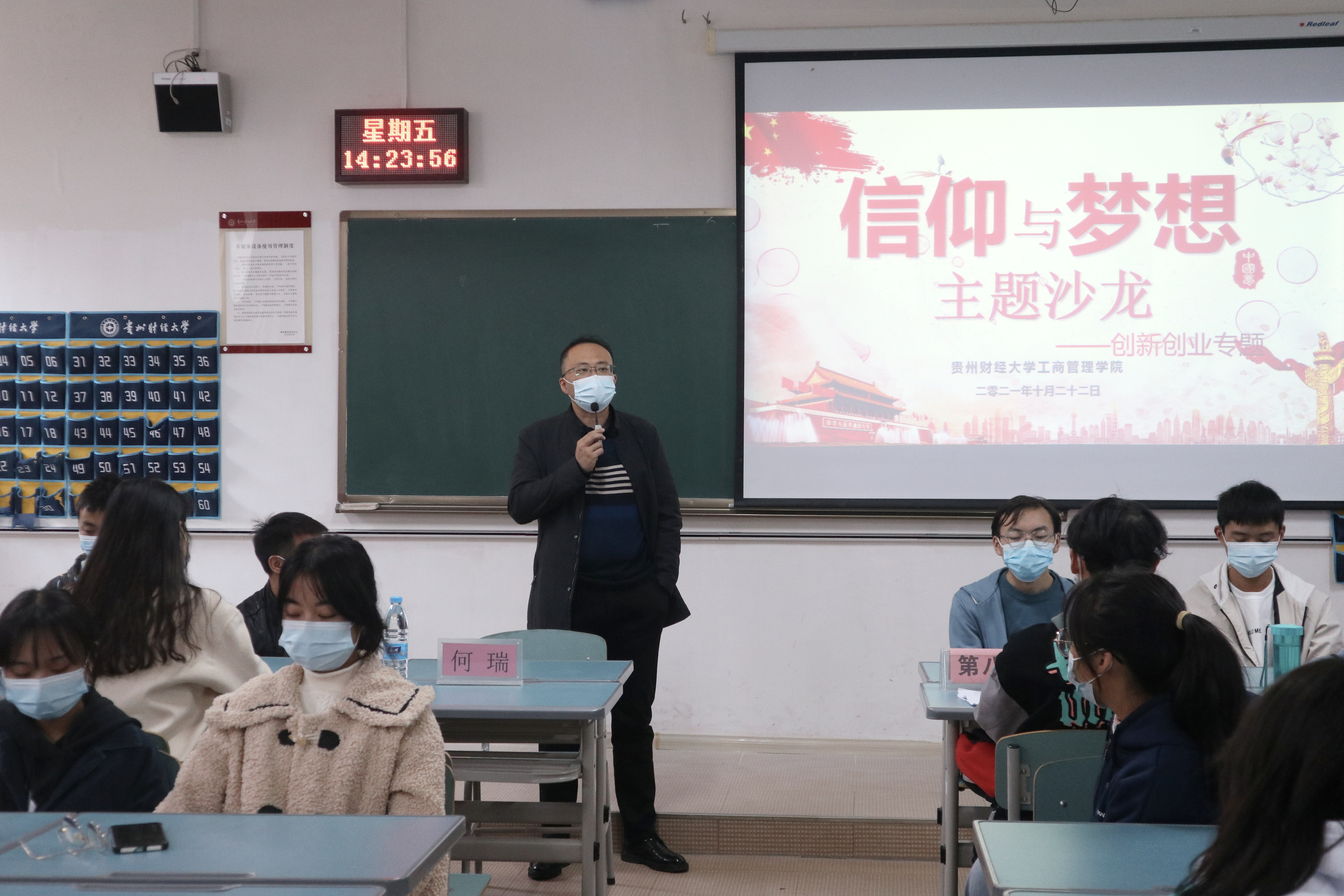 10月22日下午,马会app 团委于勤学楼2-22开展第二期“信仰与梦想”主题沙龙。马会app 2011级校友、贵安新区伍捌壹文化传媒有限公司董事长潘仕旁担任主讲嘉宾。马会app 党委副书记何瑞莅临指导。本期主题沙龙围绕创新创业专题展开。
