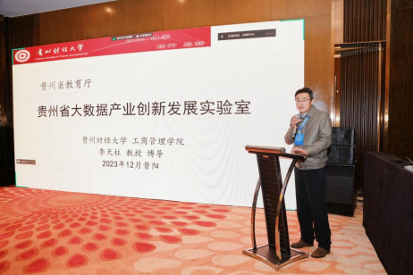 贵州财经大学博士生导师李天柱教授作了题为《大数据产业创新发展的贵州实践——基于贵州省大数据产业创新发展实验室建设的一些思考》的主题发言。李教授着重介绍了贵州省大数据产业创新发展实验室的相关情况及未来的发展战略,表示实验室要坚持面向国家大数据发展战略,结合贵州实际和高水平研究型大学建设,遵循大数据产业和数字经济发展的内在规律,面向支撑贵州省重点产业创新发展开展学术研究,为贵州“双一流”大学建设和新型工业化提供重要支撑。