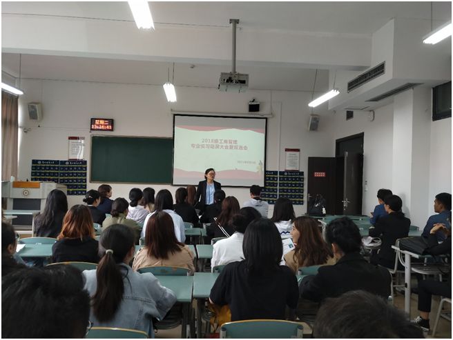 于崇德楼四楼320教室举行了2018级工商管理专业实习动员大会暨双选会。贵州北极熊集团、浦发银行两家企业,工商管理系副主任王祯敏老师,工商教研室张新启老师、刘正坤老师、罗佳老师,实践办李嫄老师出席本次会议。会议由王祯敏老师主持,2018级全体工商管理专业学生参会。