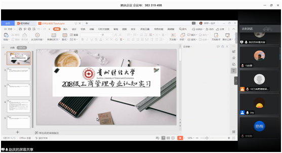 为了让同学们充分了解专业认知实习的相关内容,2020年6月10日,18级工商管理班于腾讯会议平台组织开展了2018级工商管理专业认知实习动员大会。本次会议由罗佳老师主持、赵庆老师主讲,18级工商管理班全体同学参加。