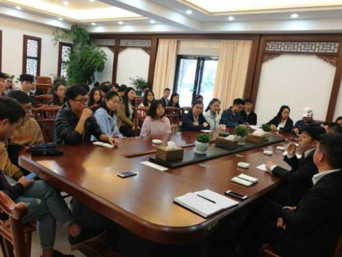 第一环节:与贵阳青岩古镇景区管理有限公司董事长徐东、常务副总经理申晟宽、财务总监牟庆辉和市场营销经理赵剑锋进行亲切座谈,期间,多名同学结合本专业理论知识对青岩的营销现状及发展规划提出了很多有针对性的问题,得到了管理方的专业回复,会谈气氛活跃。