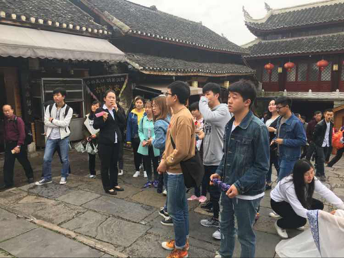 第二环节:同学们在专业导游的带领下,参观了青岩古镇,因古镇被评为国家级5A景区,景区的设计和规划有了较大的变换,跟着导游的讲解漫步期间,深切感受到青岩新面貌。