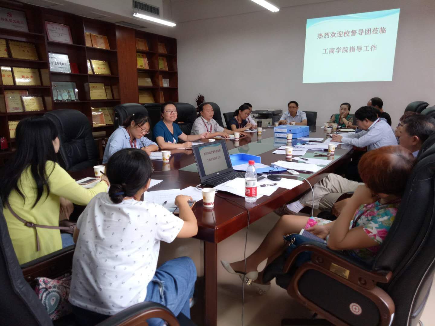 首先,由余开远组长对本次会议的目的和议程做了简要说明,接着,工商学院副院长刘良灿对学院本科教学督导的开展情况做了总结汇报。随后,校督导组成员对工商学院开展本科教学督导工作的相关支撑材料进行了认真的查阅,并进行了深入的交流。