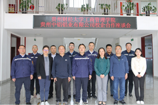 党委书记杨阳、院长刘良灿、党委常务副书记崔军、专职教师任廷海和王祯敏、工作人员张贵婷赴贵州中铝铝业有限公司开展校企交流座谈会。贵州中铝铝业有限公司董事长曾浩、副总经理刘民、副总经理唐海荣、支委委员吴绍斌、财务总监李宏及相关工作人员参加了此次座谈会。会议由唐海荣主持。