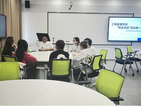 “师生共读”第一期活动,本期图书推介人为蔡升桂老师,推介书目为《重新定义公司》《重新定义团队》。