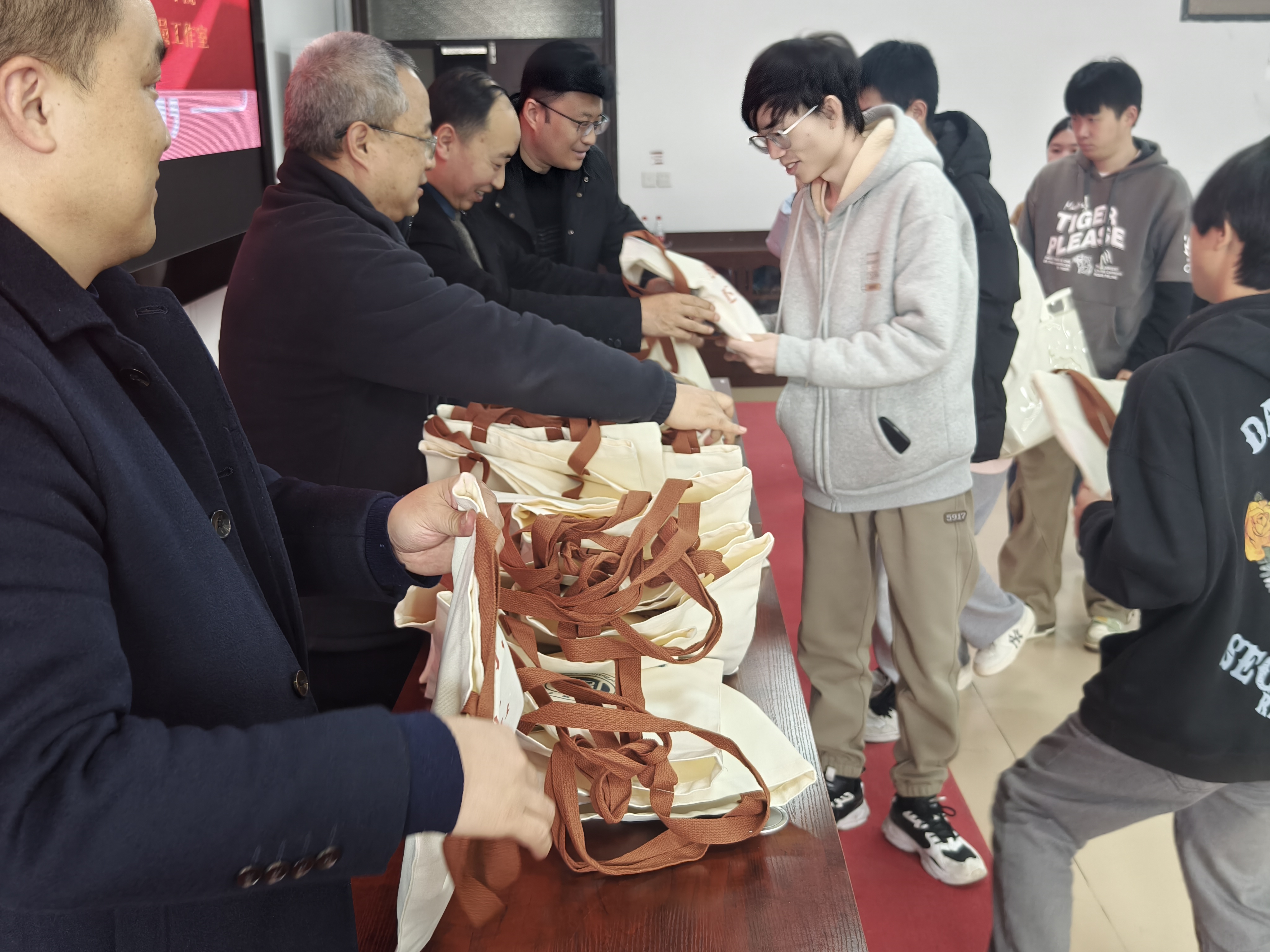 刘良灿充分肯定了每一位考研学子逐梦前行所付出的汗水和努力,分享了专业的考试规划和经验,鼓励同学们积极提升自我,进行学术深造。随后2025届考研上岸的学长学姐通过视频的形式给出温暖建议,分享了考研冲刺阶段调节心态的方法,鼓励他们追逐梦想、努力向前。本科生第一党支部杨红莲同志作为党员代表向2026届考研的学长学姐们送上了真挚祝福。最后,领导们为考研学生逐一发放“加油能量包”,鼓励他们充满能量,以更加饱满的热情和更加坚定的信念迎接考试。